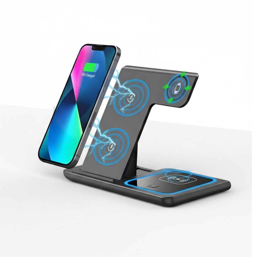 3-Device Charging: Powers your phone, smartwatch, and earbuds at the same time with a clean, organized layout.
