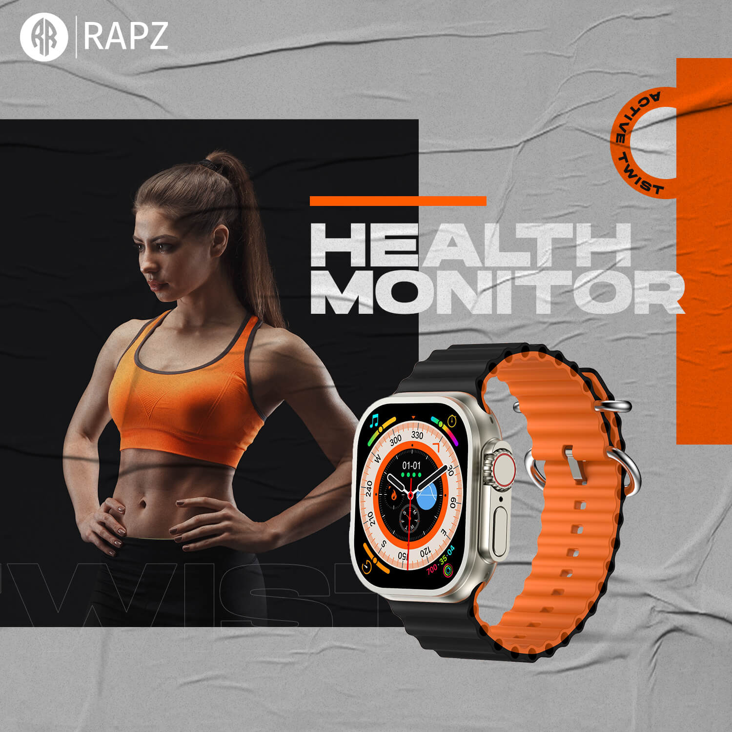 Rapz Active Twist unveils the 2.01-inch TFT Color full lamination display watch, a stylish and versatile accessory. The reversible strap adds a personalized touch, allowing you to match your watch with any outfit effortlessly. With an IP67 rating, it’s resilient in challenging environments, perfect for outdoor enthusiasts. The vibrant TFT color display ensures clear notifications and fitness tracking. Bluetooth calling makes communication on the go a breeze. Health features include a heart rate monitor, blood pressure monitor, and sports mode for precise tracking. The 2 pin magnetic charger ensures hassle-free, reliable charging, making Rapz Active Twist the ultimate modern lifestyle companion.