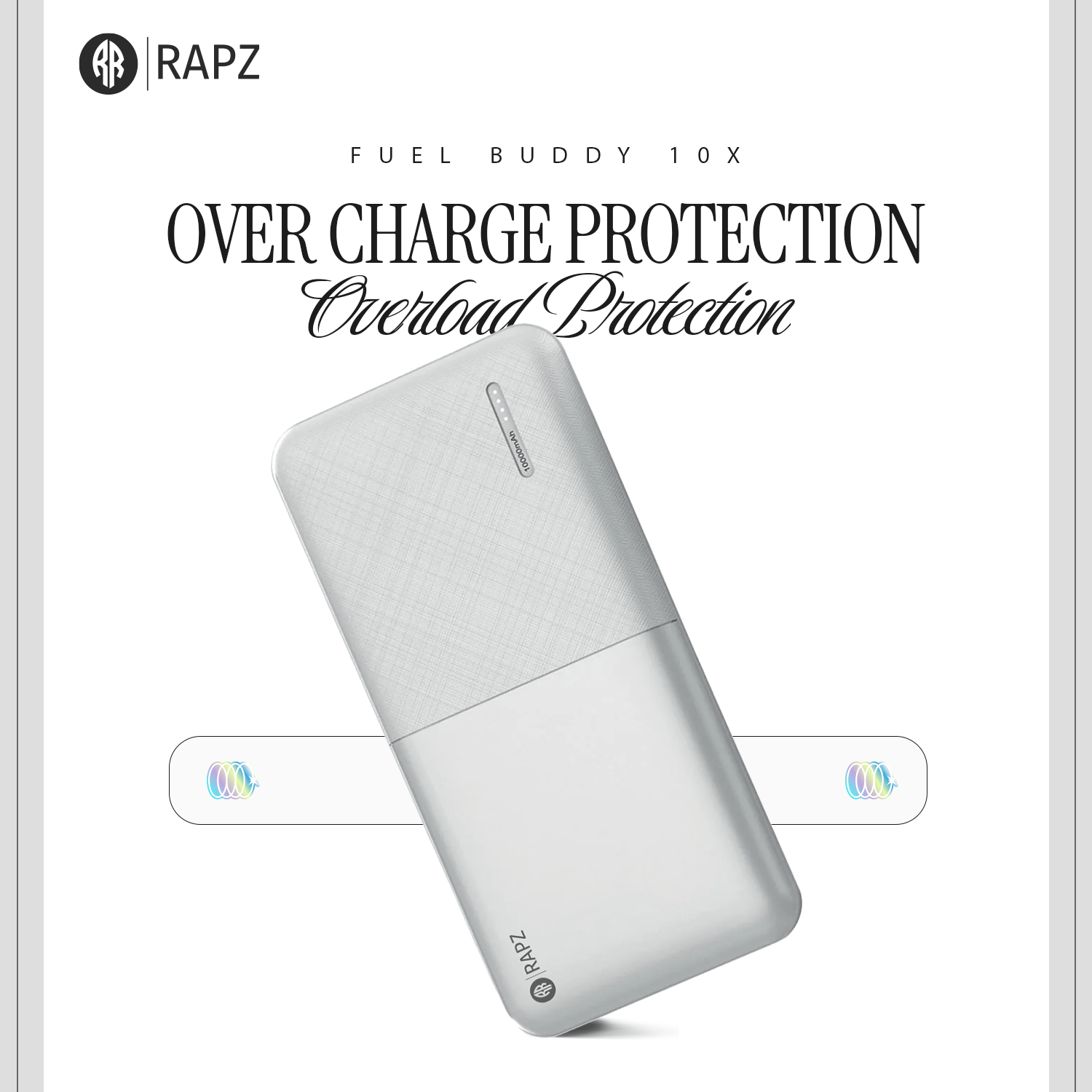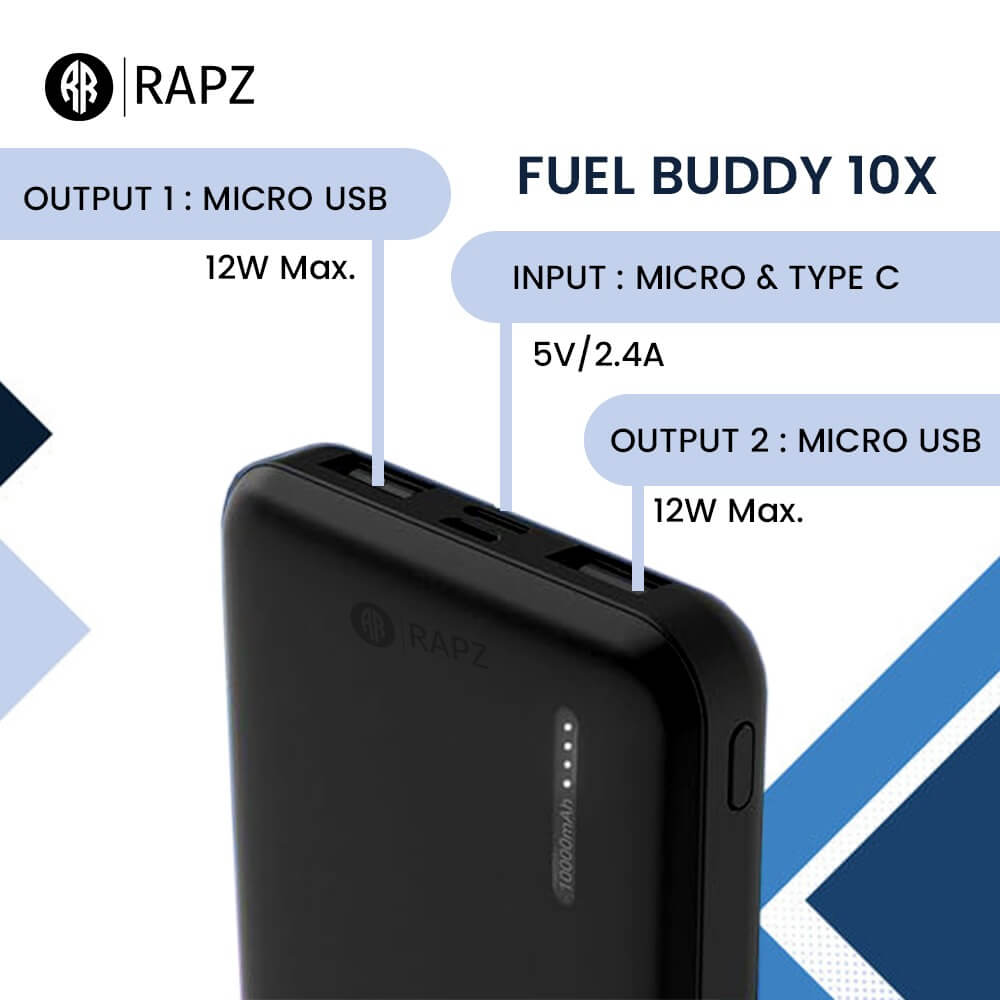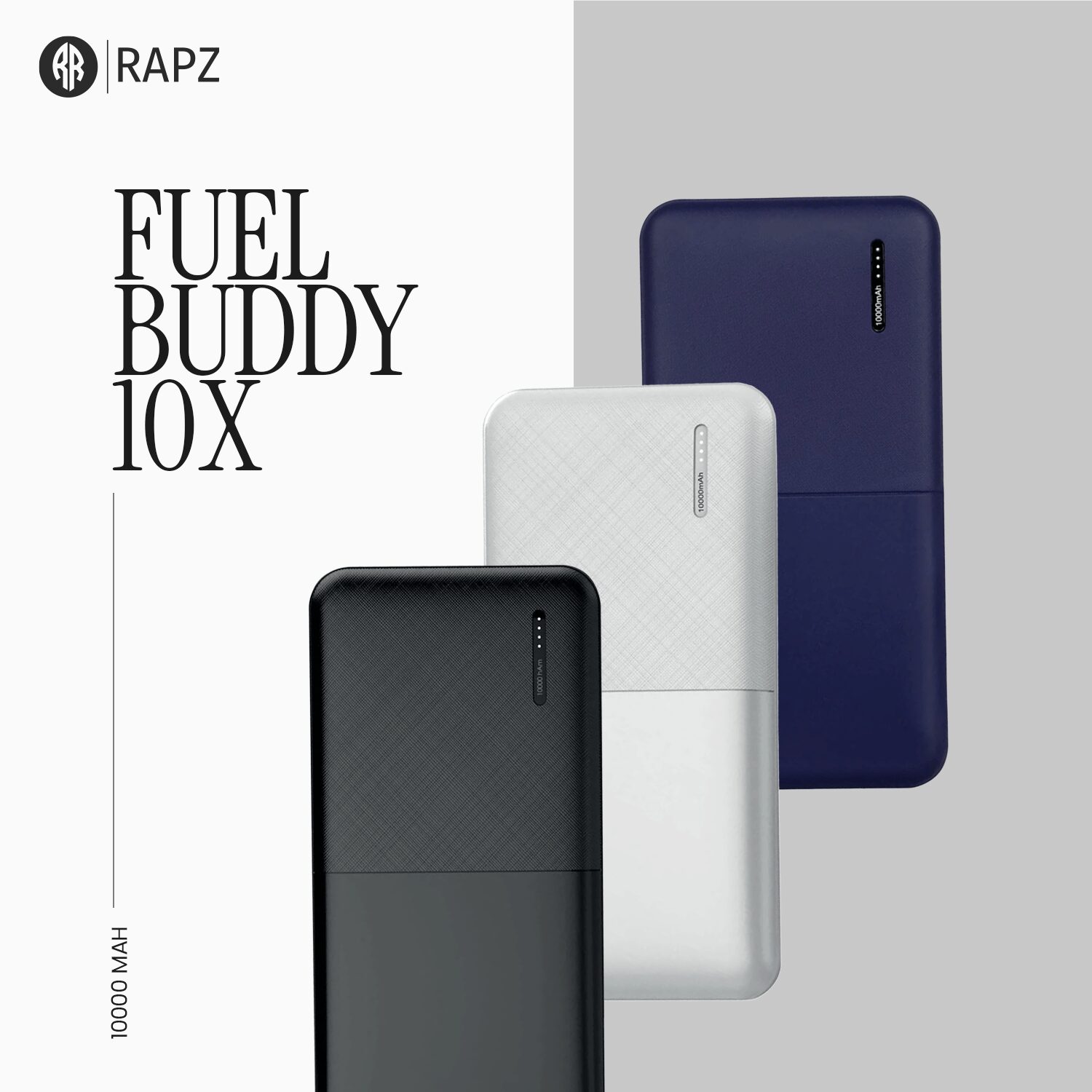 The Fuel Buddy 10X 10000mAH Power Bank is a reliable and portable charging solution designed to keep your devices powered throughout the day. With a large 10,000 mAh capacity, dual USB outputs and up to 12 W output power, you can charge two devices at once — from smartphones to wireless earphones — without worrying about battery drain.