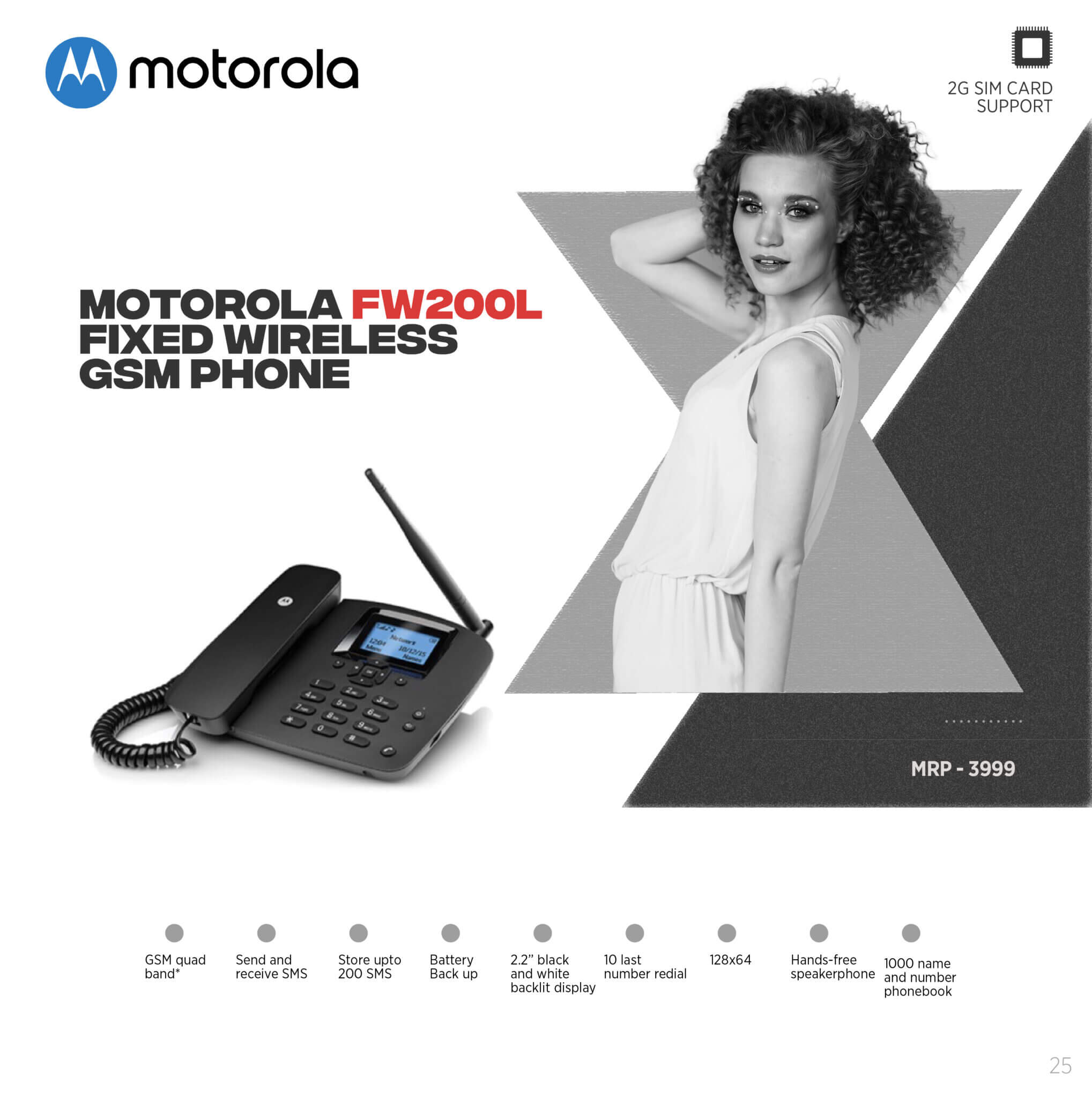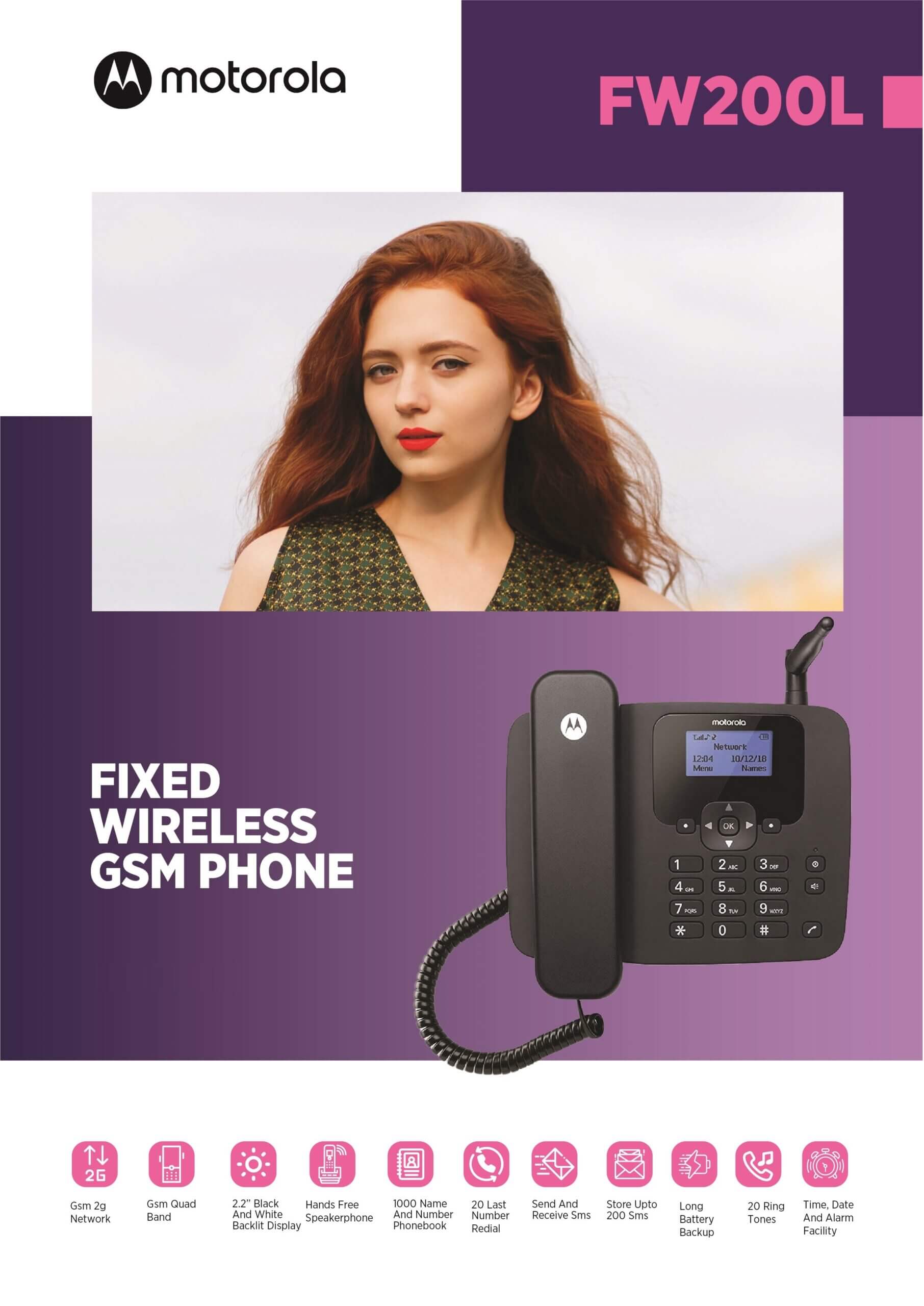 - OPTIMAL PERFORMANCE:-Featuring a variable GSM quad-band, the Motorola FW200L Landline Phone can function with a sim card. So, you can insert your sim and use it if required.