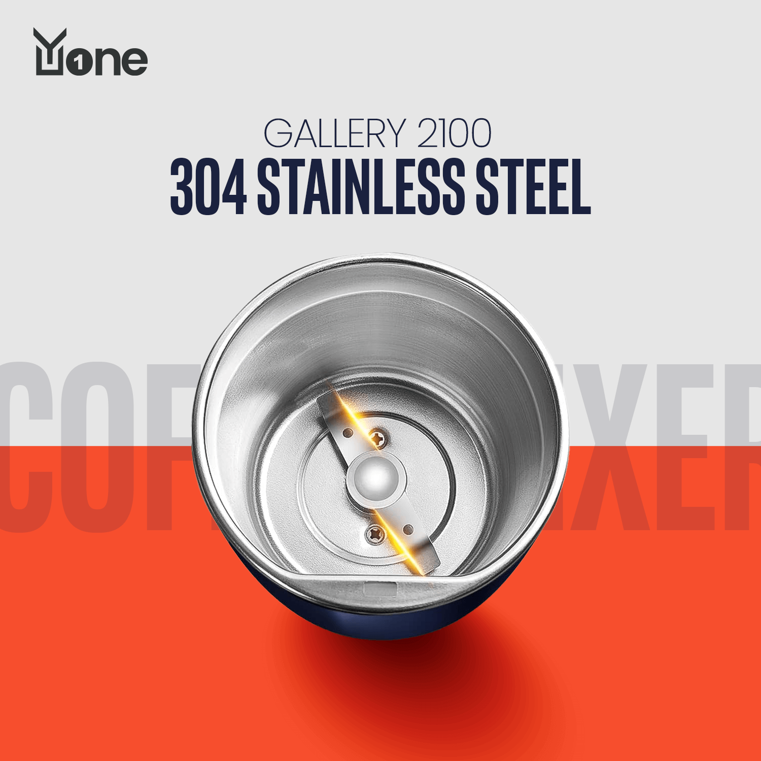 Introducing the Yuone Gallery 2100 Electric Portable Mini Grinder, meticulously crafted by YK for unparalleled performance in your coee and culinary endeavors. This industrial-grade co ee pulper machine and commercial blender boasts a robust stainless steel housing, ensuring both durability and a sleek aesthetic. Powered by a copper motor with 200W, it operates at speeds ranging from 22000 to 28000 rpm, swiftly transforming legumes and cereals into nely ground textures. The precision-engineered 304 Stainless Steel blades guarantee efficient and consistent results. With its user-friendly one-key control, this compact marvel allows e ortless operation. Ideal for professionals and enthusiasts alike, the 80g capacity ensures versatility, making the Yuone Gallery 2100 an indispensable companion in elevating your grinding experience