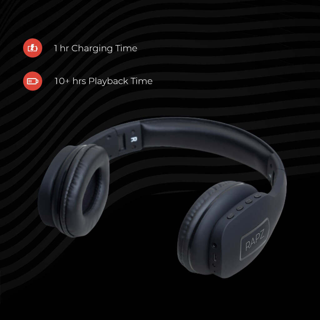The Rapz H2 Bluetooth Headphone comes with an amalgamation of style and performance. Now get ready to enjoy tunes with super extra bass and crystal clear sound. The ergonomic design creates passive attenuation of ambient noise while providing maximum comfort for hours of listening pleasure in a snuggly fit without fatigue. The lightweight and compact design weigh very little and the ear cups can also be folded for easy, convenient storage.
