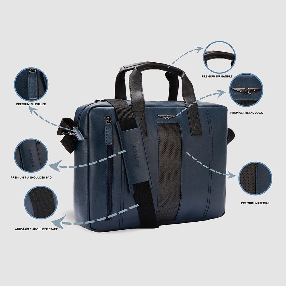 Designed for the bold professional, the Police Laptop Bag pairs a sharp colourblocked design with rugged vegan leather. Its streamlined build includes a secure main compartment, front quick-access pocket, and dual carry options. Perfect for everyday commutes, office use, and urban travel with signature Police confidence.