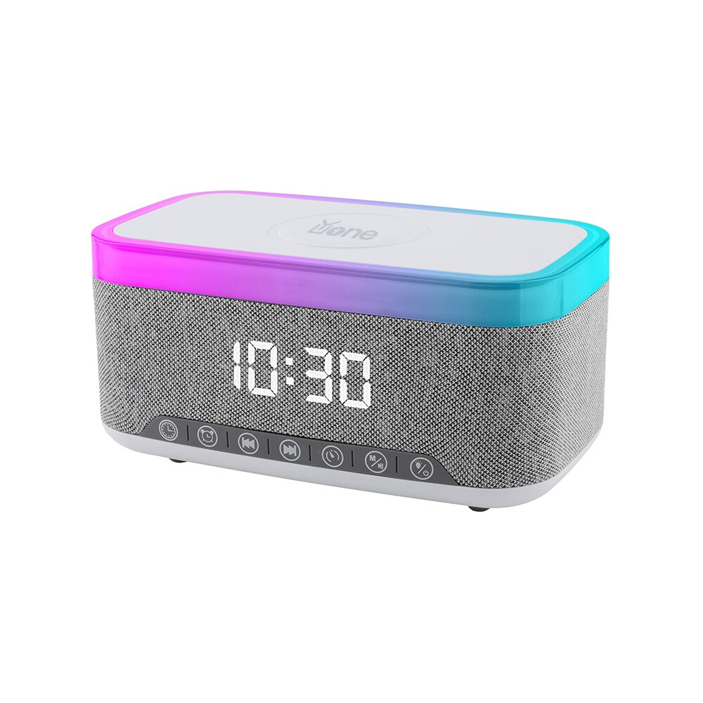 The YuOne GlowCharge 501 is a stylish 4-in-1 bedside companion featuring 15W fast wireless charging, a Bluetooth speaker, an LED clock, and RGB night lighting. With premium fabric design and multiple audio inputs, it brings convenience, entertainment, and ambience together—perfect for bedrooms, desks, and modern living spaces.
