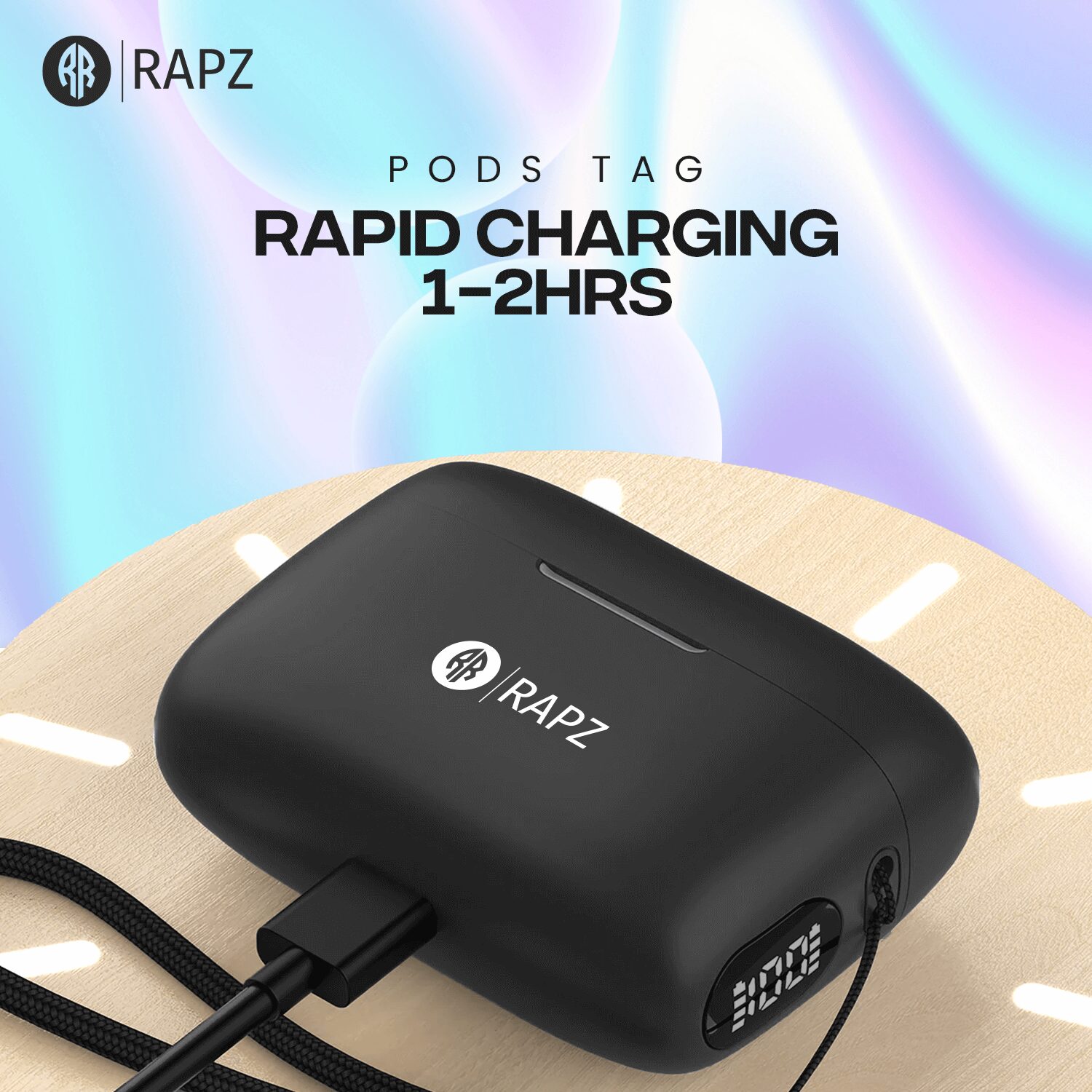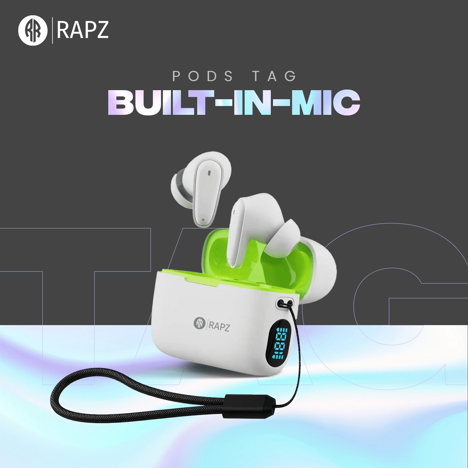 Each earbud is powered by a 30 mAh battery, providing up to 3 hours of playback, while the compact 300 mAh charging case extends usability with convenient recharging on the go. With a 100-hour standby time and efficient charging, the Pods Tag earbuds are a practical and dependable choice for users who want simple, wireless audio for daily listening and calls.