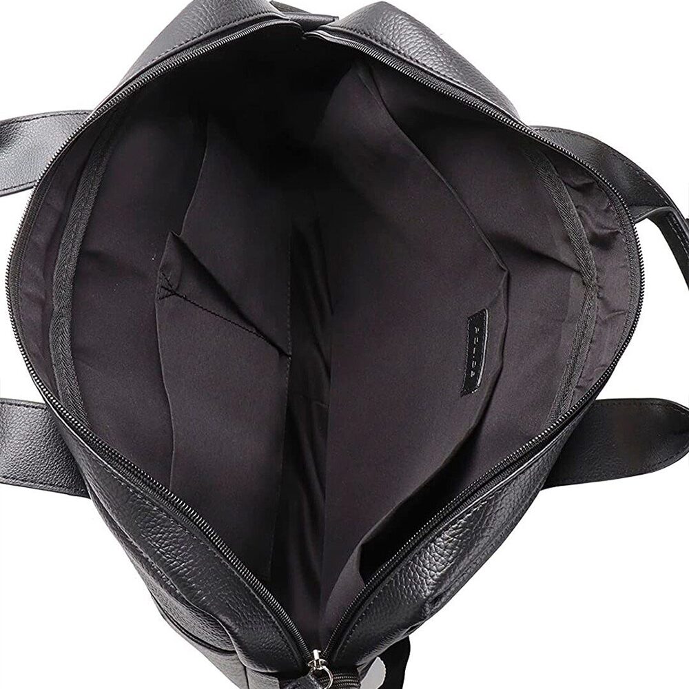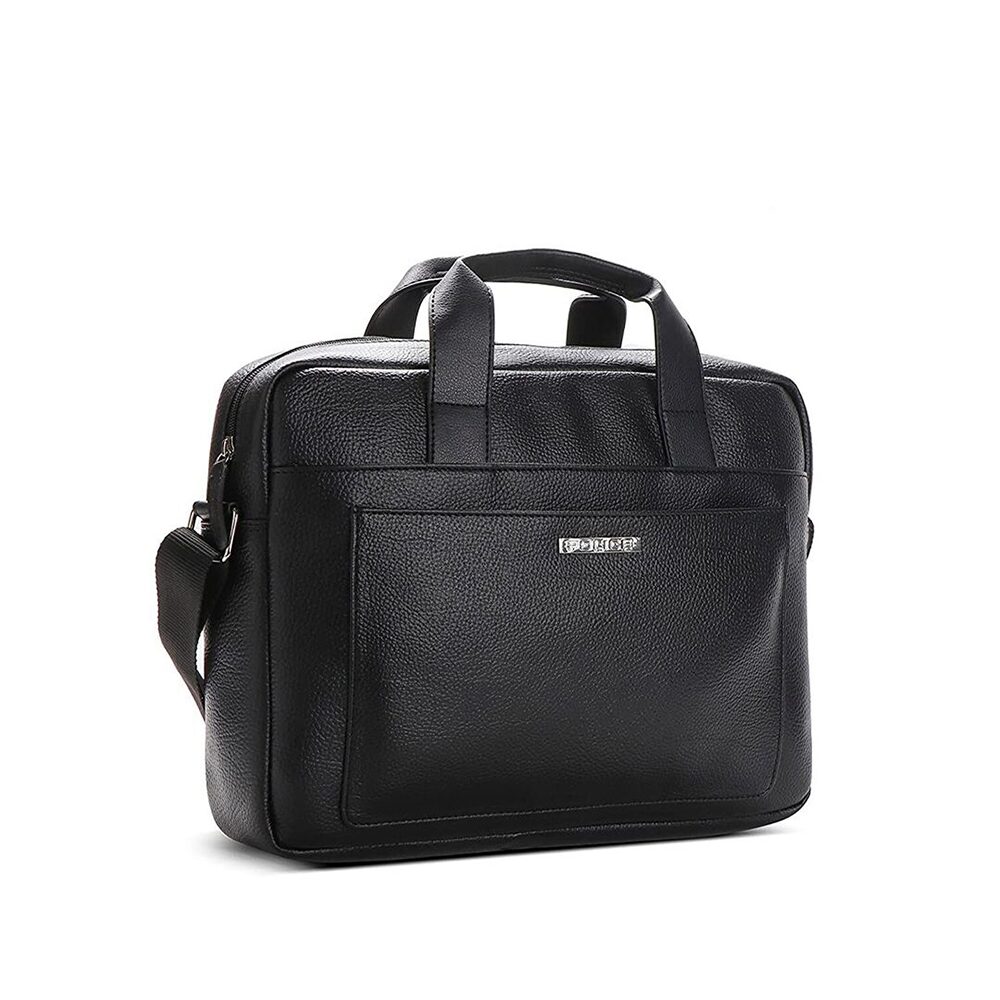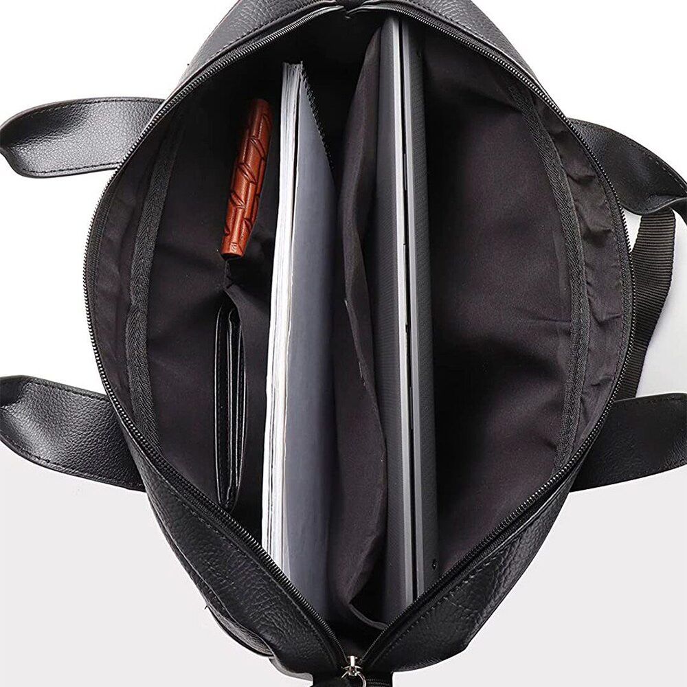 A sleek, all–black professional laptop bag crafted from premium PU leather, designed for work, meetings, and daily travel. This structured bag offers a clean, modern look with durable construction, making it ideal for office-goers and business professionals. The spacious compartments keep essentials organized while the padded laptop sleeve ensures device protection.