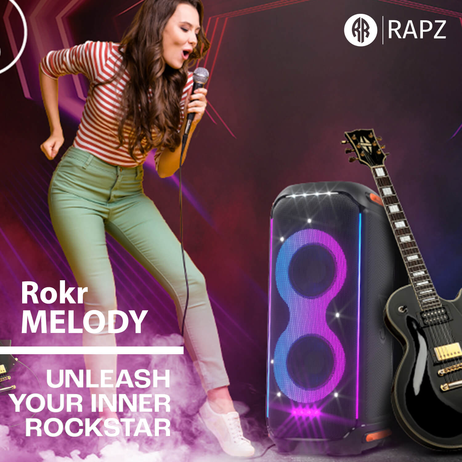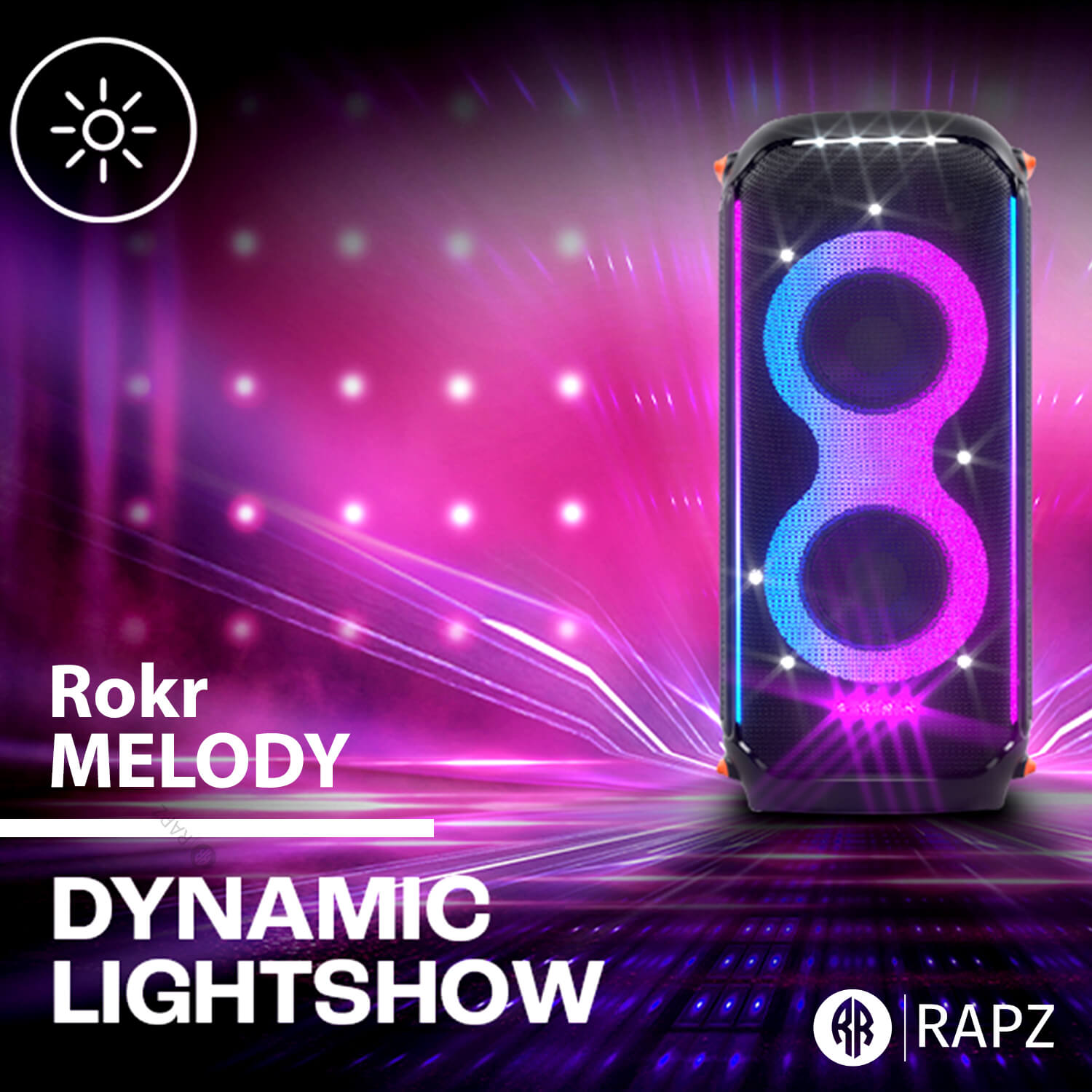 The Rokr Melody portable Bluetooth speaker brings your music to life with powerful 80 W audio output and dynamic RGB LED lights that elevate any gathering. With Bluetooth 5.1 connectivity, pairing with your phone or tablet is quick and stable, while USB, SD card and AUX inputs give you the freedom to play music in multiple ways without interruption.