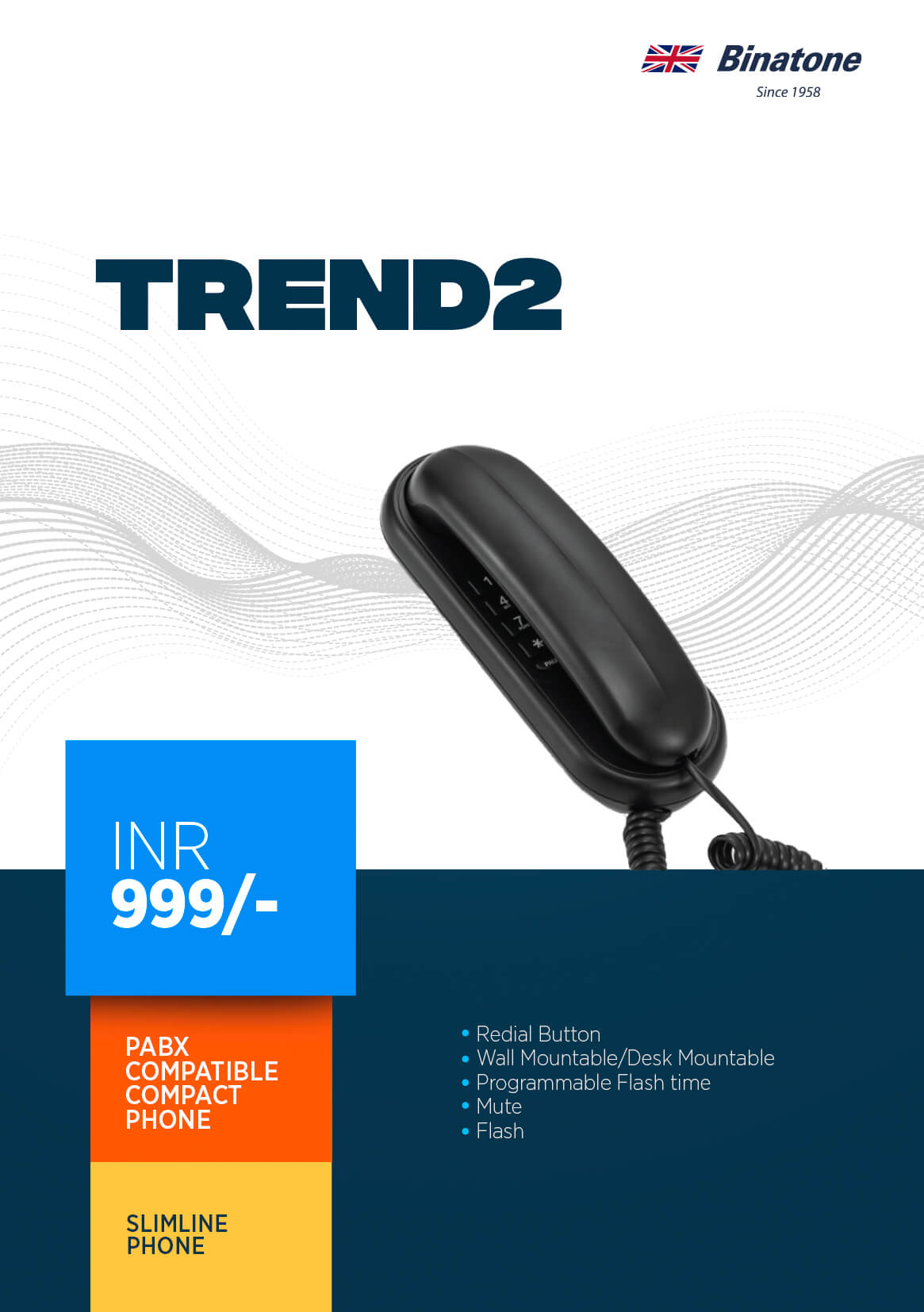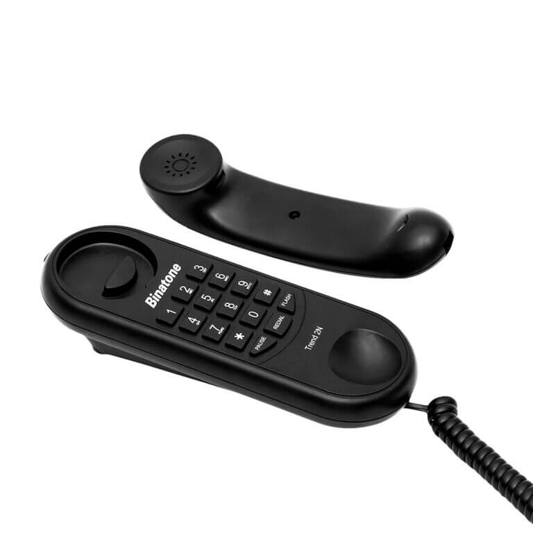 This stylish corded phone comes with an alphanumerical keypad and can be mounted on the wall.