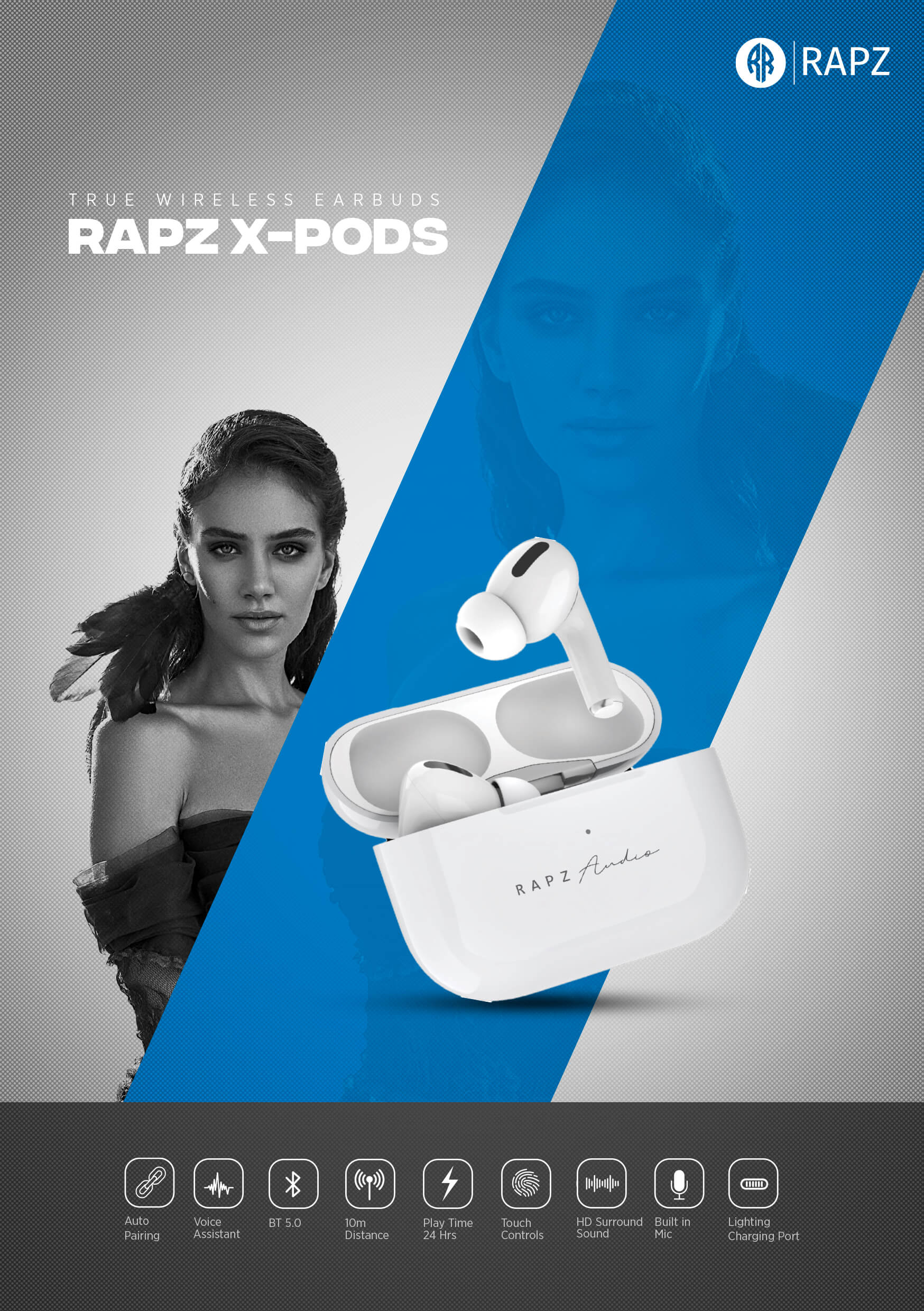Rapz X-Pods True Wireless Earbuds with Mic have a dynamic driver that ensures low distortion and focuses on all frequencies to deliver the complete sound experience. It uses the latest Bluetooth 5.0 technology for better audio quality with improved wireless range, plus minimal audio lag. The freedom of true wireless allows you to enjoy music while running, gaming, jogging, etc. It has a secure fit design that makes it ideal for outdoor activities. It has been carefully crafted for your all-day listening pleasure. It is snug you’ll forget you’re wearing them